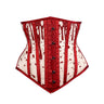 Crafted from durable nude-toned mesh, this corset fuses ethereal transparency with bold, macabre elegance. It features a nude waist tape, contrasting black boning channels, and a structured combination of spiral and flat steel bones for shape and support. The back closes with black metal eyelets and a satin ribbon, while the front is finished with a striking red-and-black busk for a distinctive gothic accent.