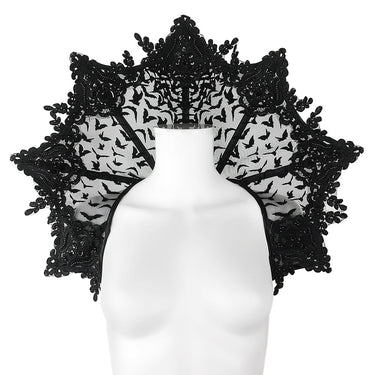 Sturdy mesh base with velvet flying bats details and overlapping lace decorations.
