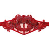 Handmade RED mesh belt with intricate hand-stitched RED lace appliqués and cascading rows of red glass beads.