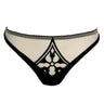 Crafted to mirror the gothic allure of the Sancta bra, this embroidered tanga combines delicate transparency with architectural detailing. Made from sheer nude tulle r, it features intricate black embroidery inspired by gothic cathedral windows — a signature motif of the Videnoir aesthetic.