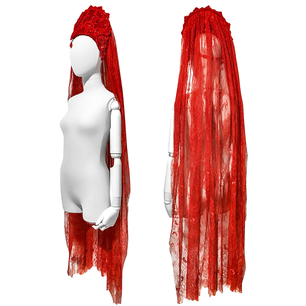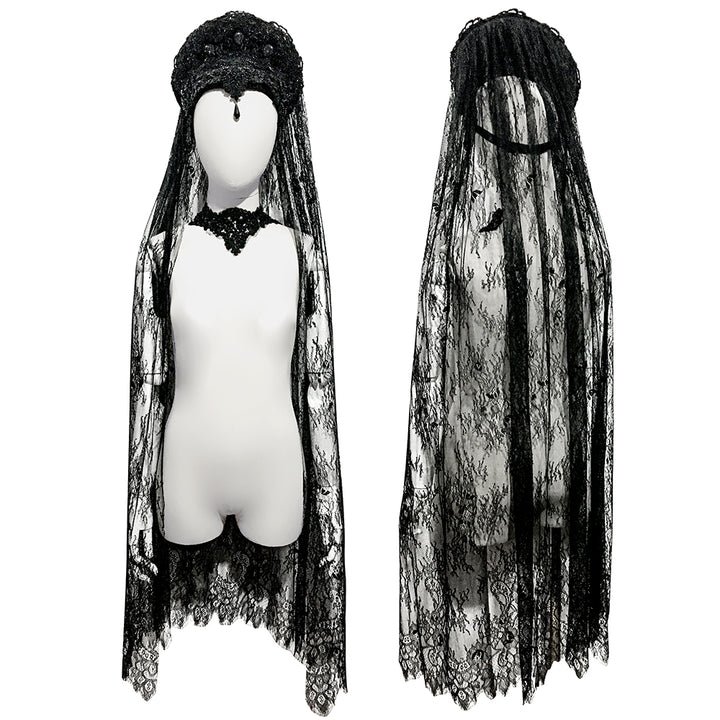 Stunning Black Widow headpiece with premium lace mourning veil.