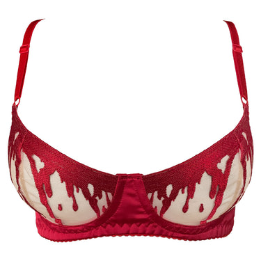 Our best-selling silhouette is reborn in a decadent new shade — the Crimson Blood bra, crafted from vegan-friendly satin and adorned with glistening scarlet drip embroidery.