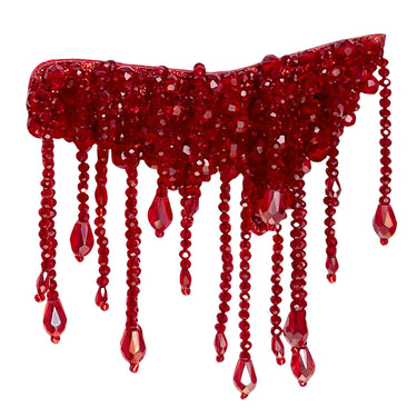 Hand-embellished with cascades of faceted crimson beads, its dripping pendants shimmer like droplets of blood in motion, catching every flicker of light. The structure is backed with a double-pin fastening, allowing it to be securely attached to any outfit, corset, or accessory for maximum versatility.